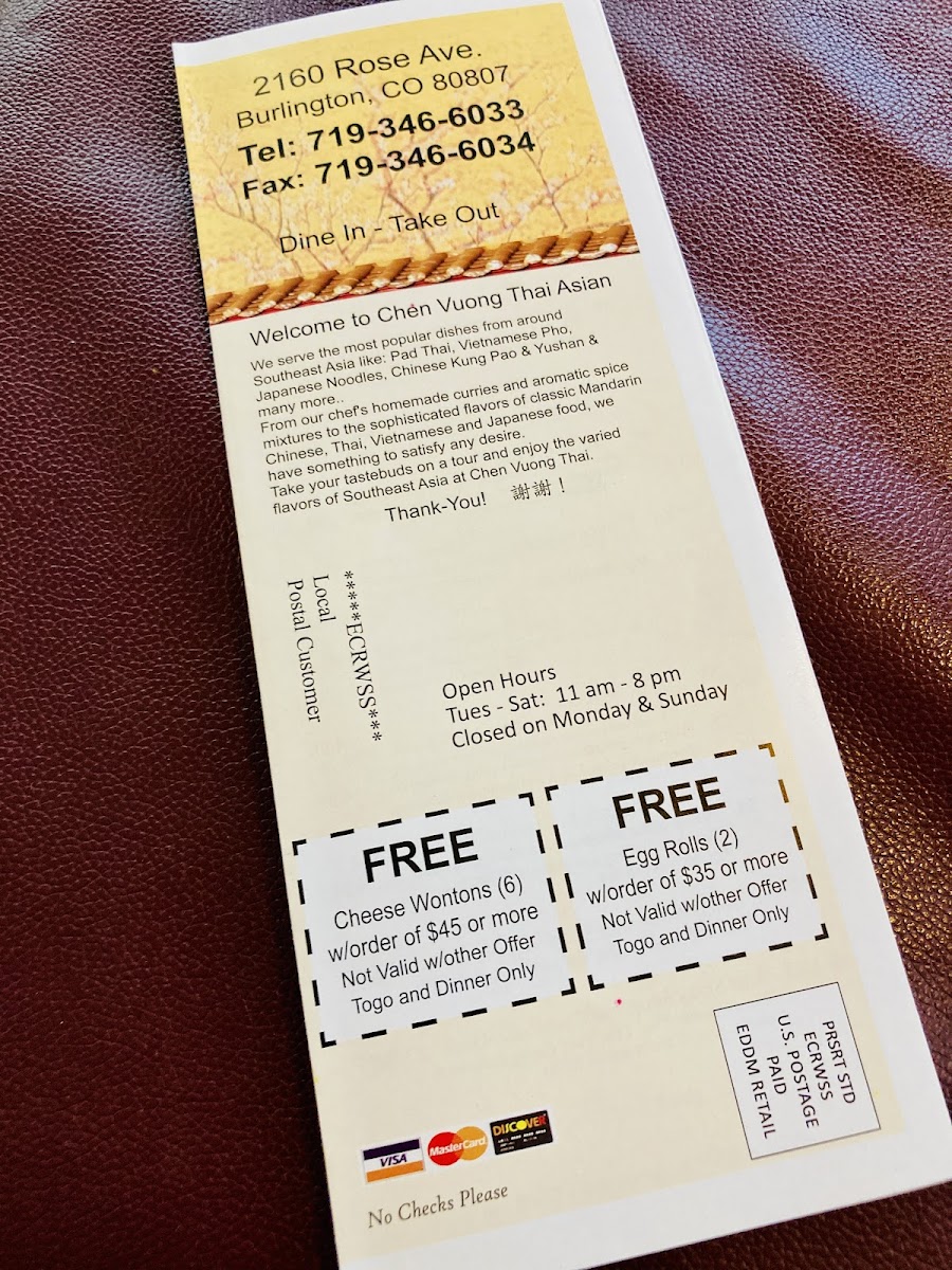 Chen Vuong Thai Menu